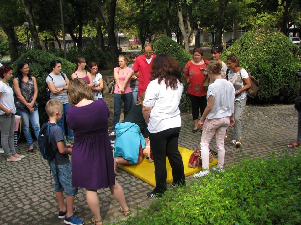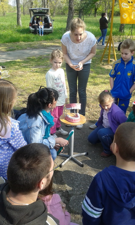 A zentai Egészségház dolgozói is részt vettek az eseményen. Dr. Véber Zita és Szabó Ildikó gyakorolták a fogmosás tudományát a résztvevőkkel. Muskinja dr Montányi Gabriella a viz fogyasztás fontosságáról beszélt a jelenlevő gyermekeknek és szüleiknek.
