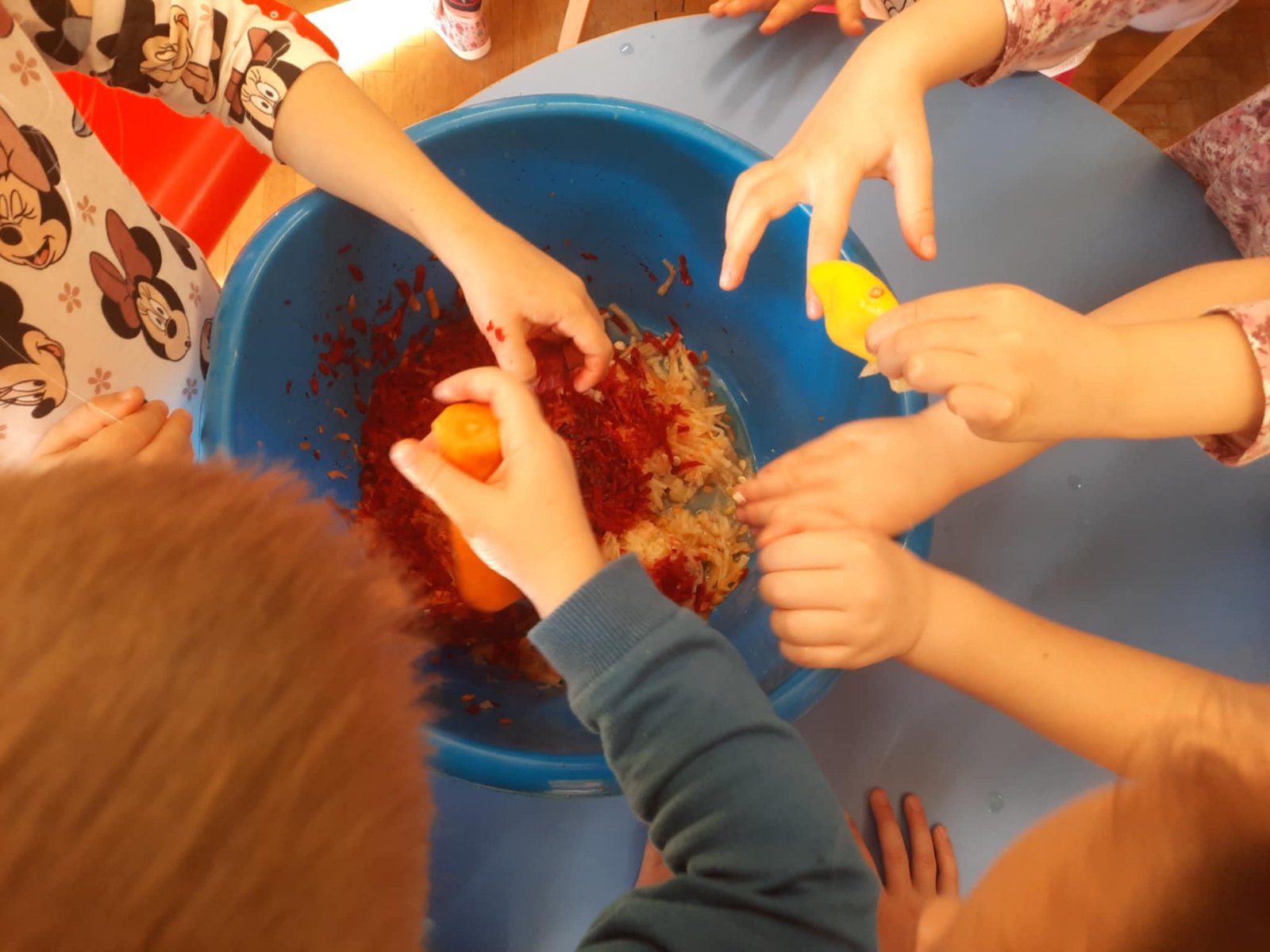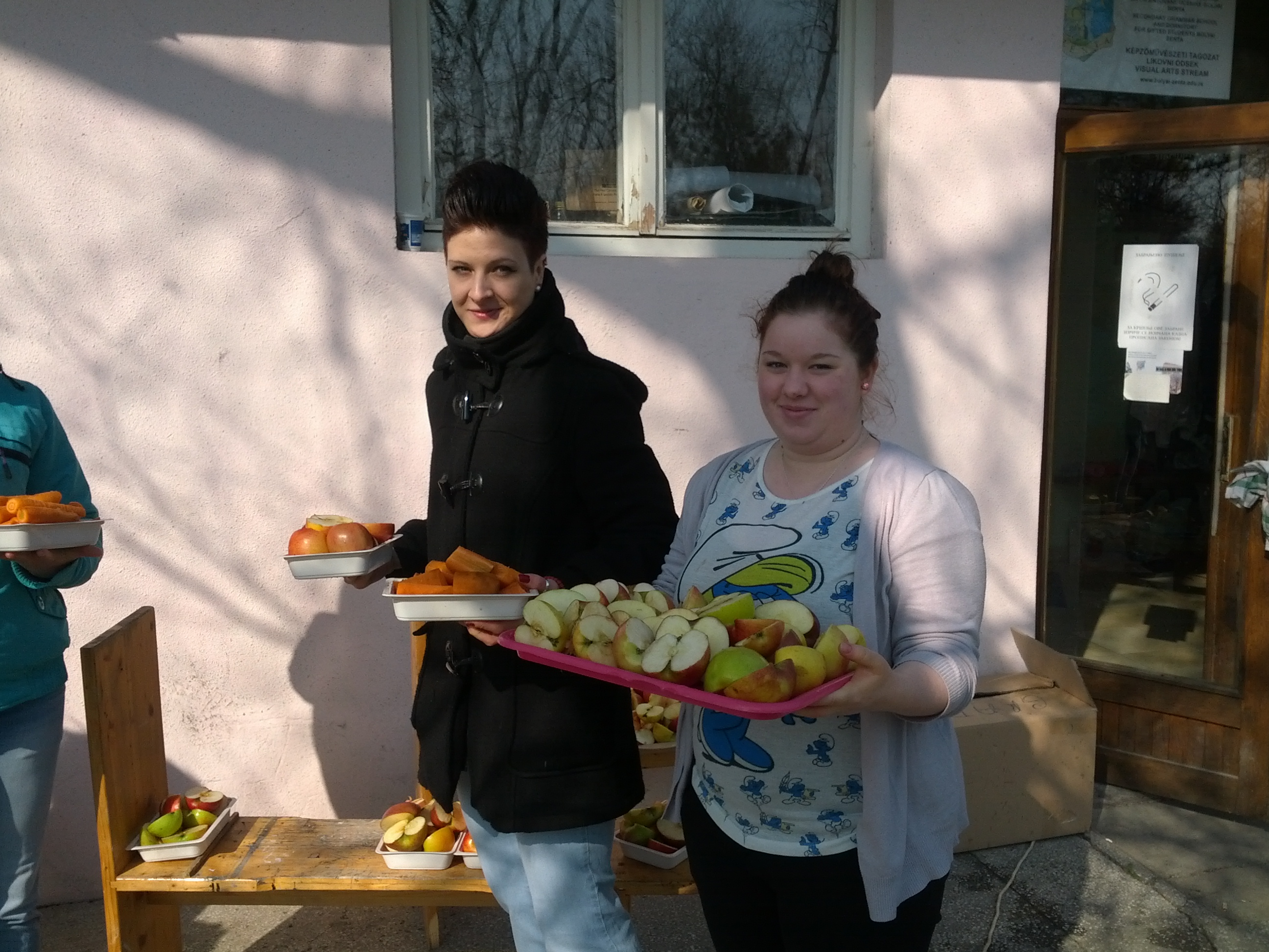 A futás után sárgarépát és almát rágcsáltak a gyermekek.