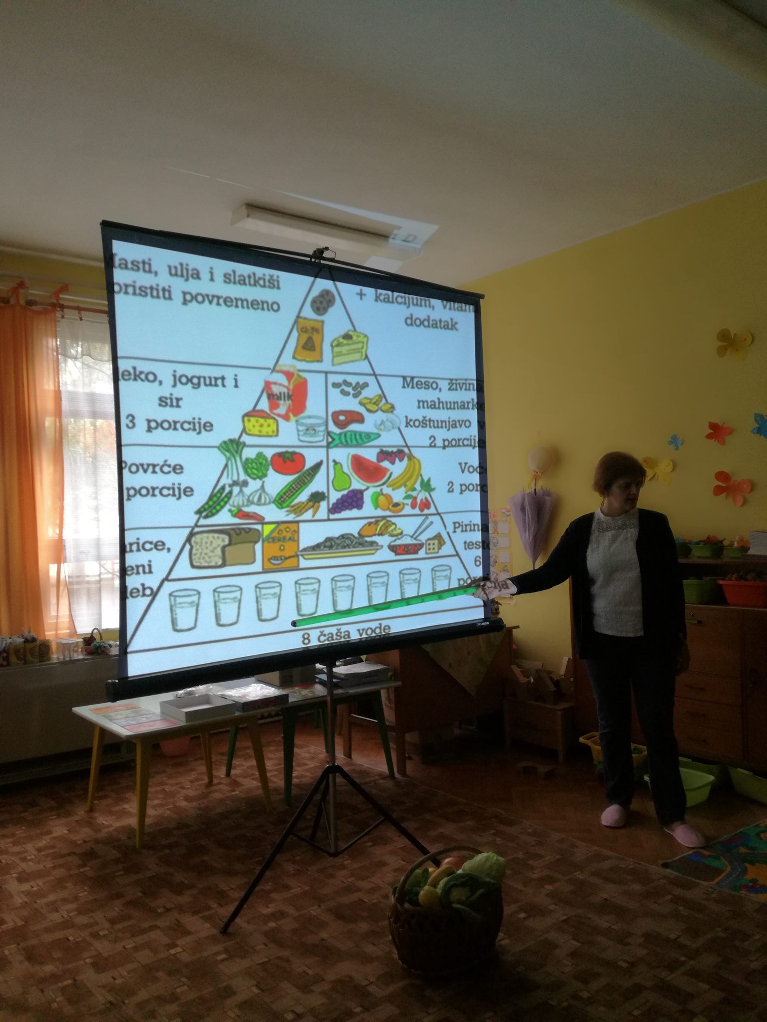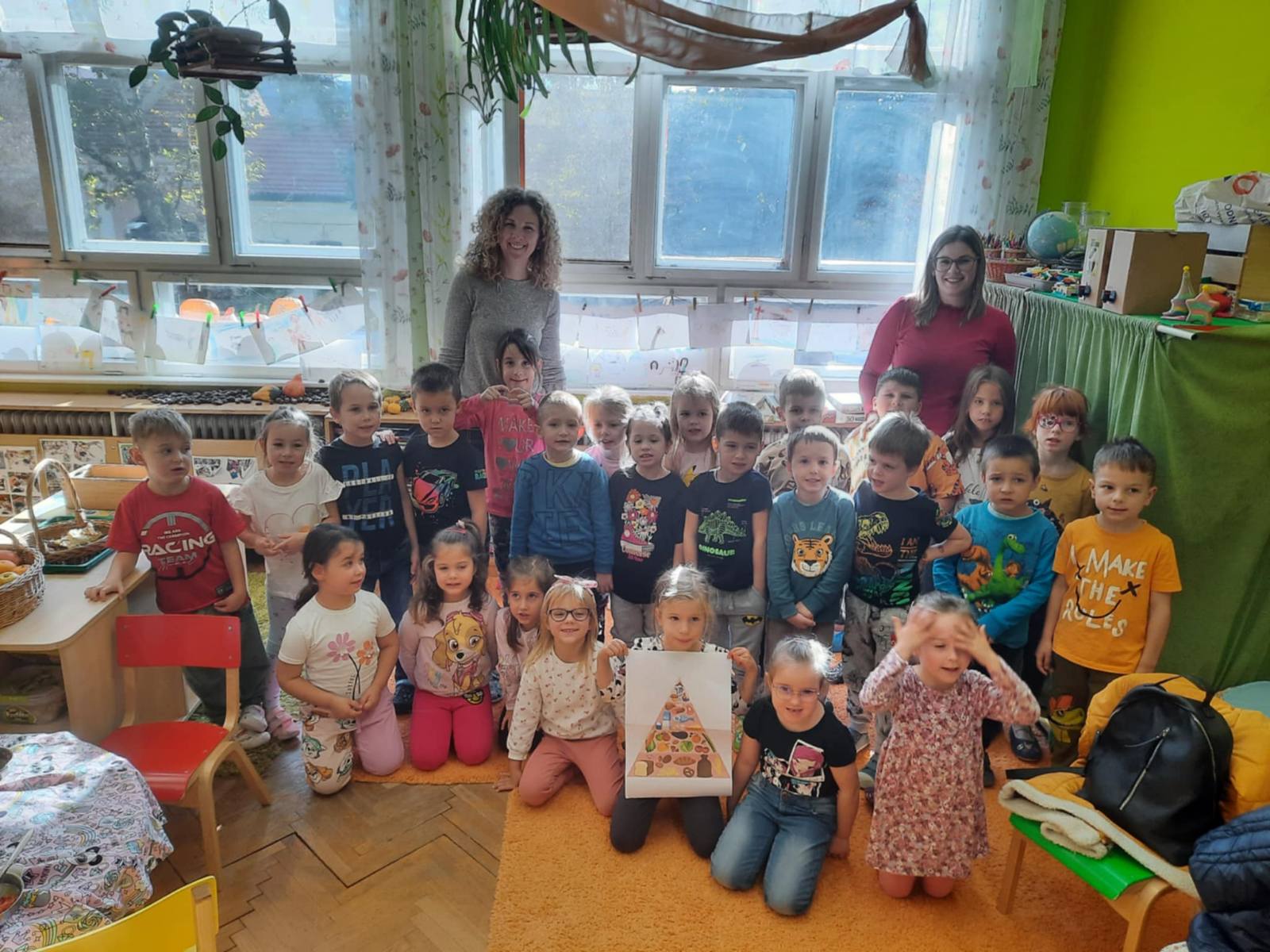 U svakoj grupi se sačinjava piramida ishrane zajedno sa decom, koja ostaje u učionicama, dostupna deci svakodnevno da bi osvežavali stečeno znanje.