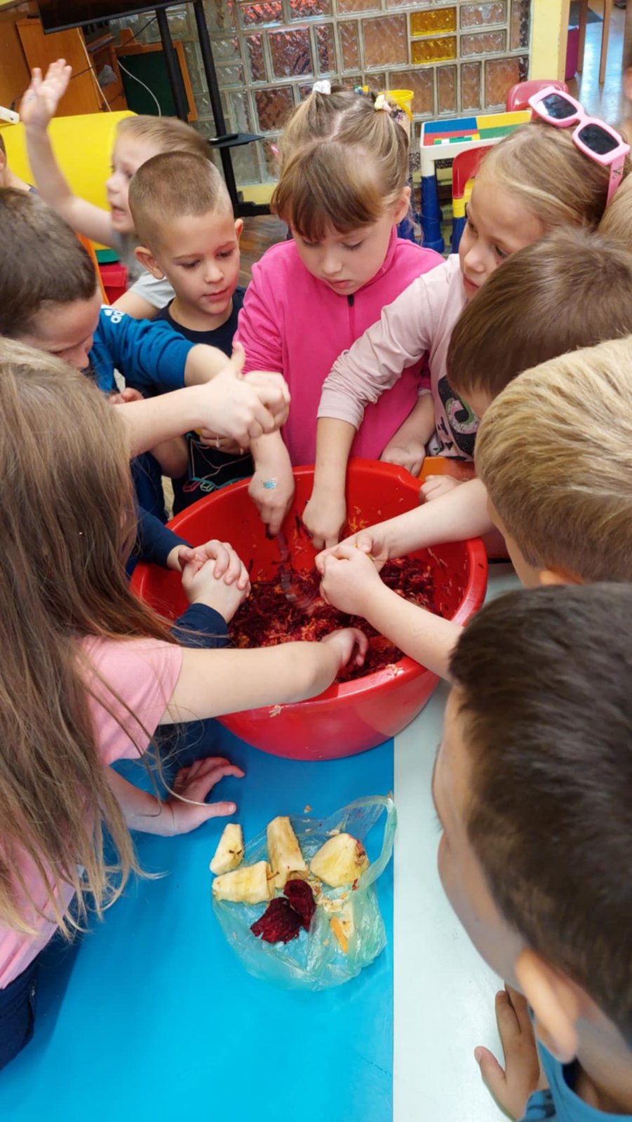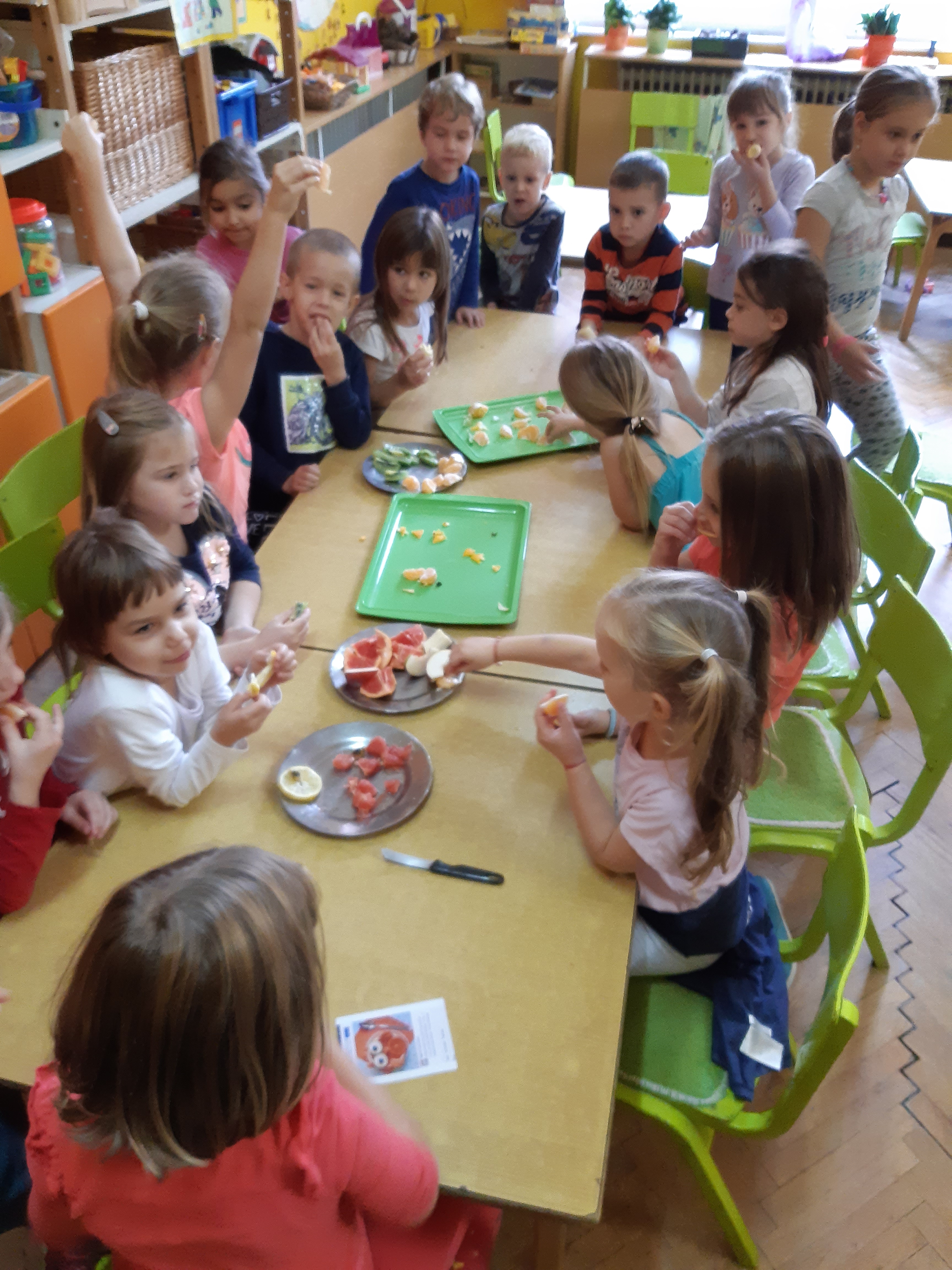 U predškolskoj grupi smo zajedno napravili zdravu salatu koju su deca pojeli.