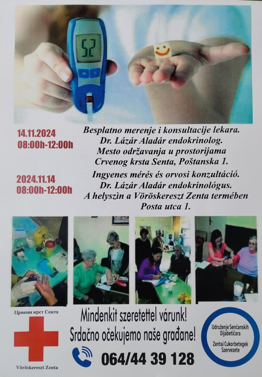 Povodom obeležavanja Svetskog dana borbe protiv dijabetesa Crveni Krst Senta, Dom zdravlja Senta i udruženje senćanskih diabetičara su organizovali bazar zdravlja.
